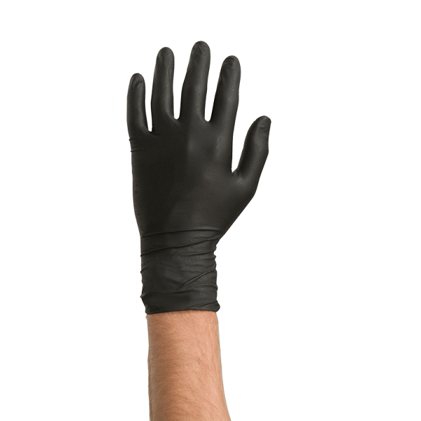 Pevné, flexibilní, pohodlné nitrilové černé rukavice. Strukturovaný povrch pro lepší uchopení. S obsahem pudru proti podráždění pokožky. Zvláště vhodné pro práci s barvami a rozpouštědly. CE0321.