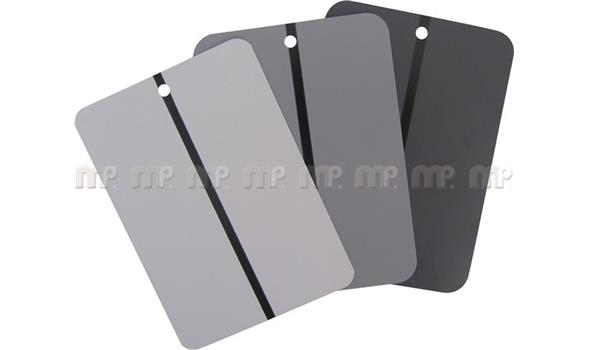 Základovaná kovová karta pro kontrolu barevného odstínu a kryvosti. Vhodná pro všechny druhy barev.