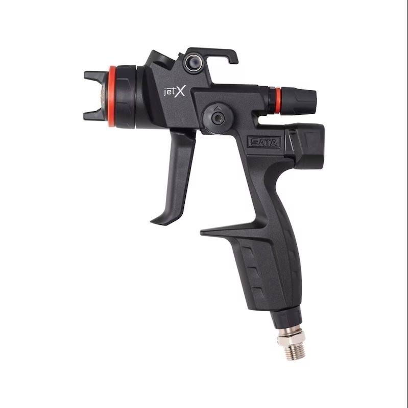 Špičková technologie trysek. Inovativní digitální funkce. Vylepšená ergonomie a jedinečná řešení detailů. Model jet X představuje dokonalé ztělesnění toho, co značka SATA představuje. Inovativní labyrintový systém proudění vzduchu vede vzduch v trysce tak, aby vystupoval bez turbulencí a pulzací – výsledkem je mimořádně jemná a homogenní atomizace. Optimalizované rozložení materiálu a rovnoměrný stříkací paprsek s jasně definovanými odtokovými zónami vedou k kontrolovanému a přímému pocitu při lakování. Jet X je novým měřítkem v prémiové třídě.