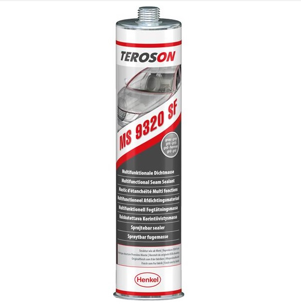 Teroson MS 9320 SF je stříkaný tmel s dobrou odolnost proti oděru. Vytvrzuje tím že absorbuje vlhkost ovzduší. Opravy karosérií - Utěsňování švů - SuperFast. Obnova struktury povrchové úpravy OEM u všech vozidel. Nanášení pistolí TEROSON PowerLine II a MultiPress.